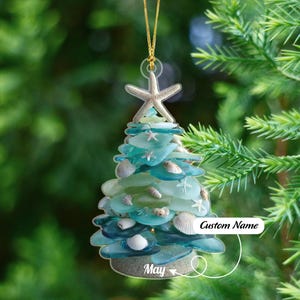 Personalized Sea Glass Christmas Tree Ornament, Custom Coastal Xmas Decor, Ocean Inspired Gift for Beach Lovers