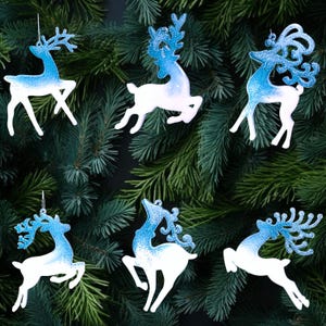 Set of handmade Christmas decorations made of epoxy resin in the shape of deer, shiny festive decorations with a gradient effect, 6 toys