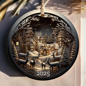 Stained Glass Ornament, 2025 Christmas Ornament, Holiday Gift Idea, Heirloom Keepsake, Round Ceramic, Bauble Present, Unique Ornament